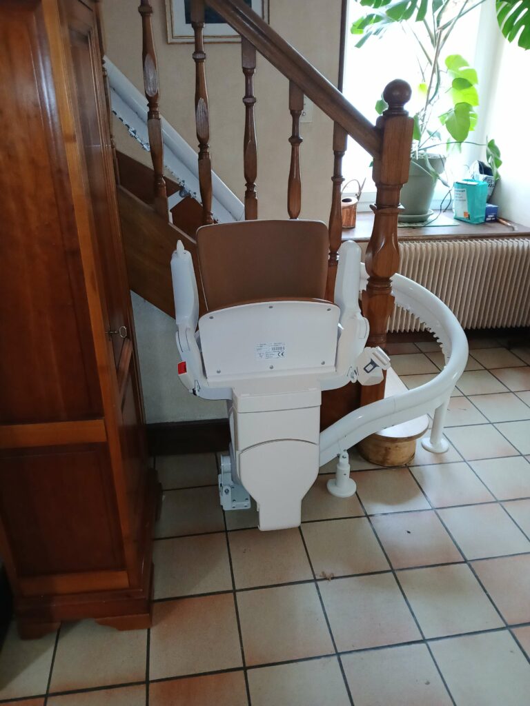 Nouvelle installation d’un monte escalier Handicare courbe avec un siège Classic à Egletons en Corrèze (19)
