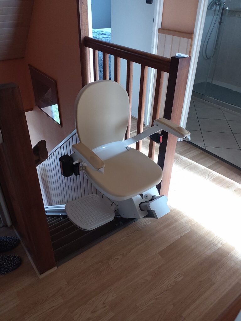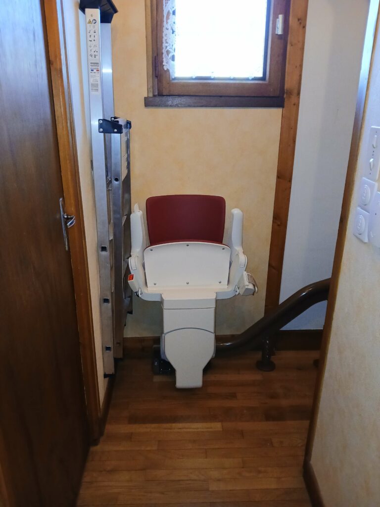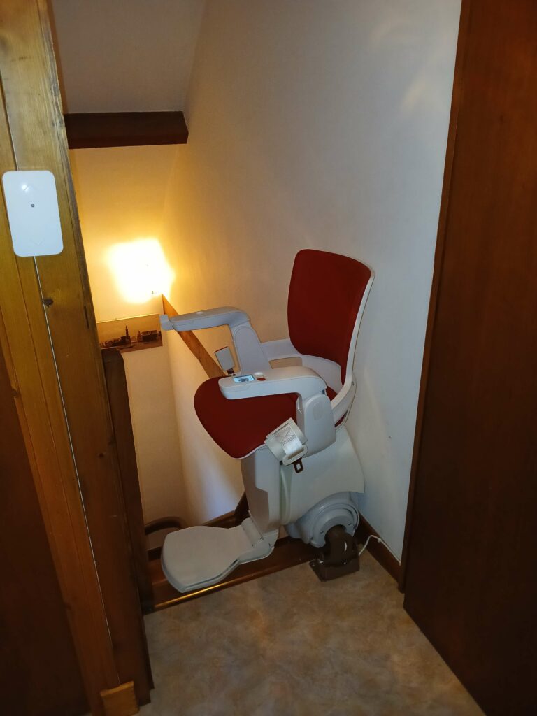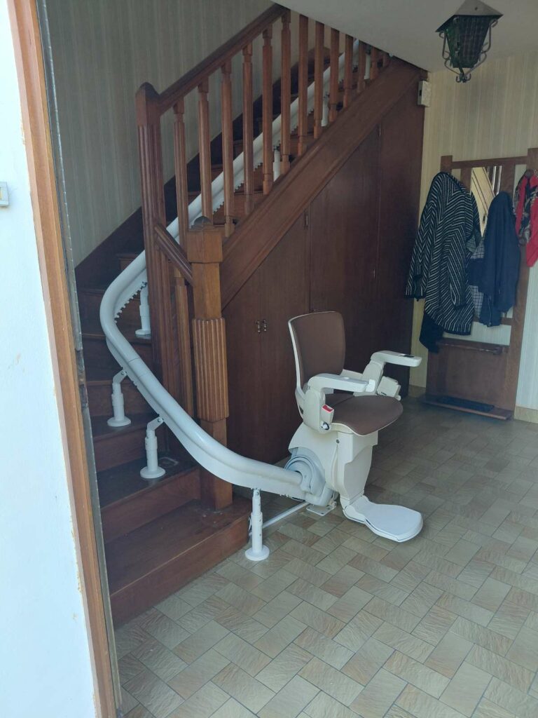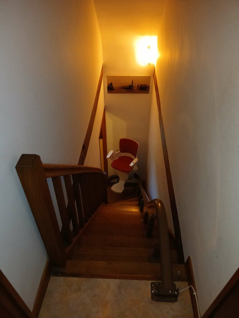Après leur avoir installé l’année dernière un siège monte-escalier pour desservir le sous-sol, nous avons cette fois-ci équipé l’escalier permettant d’accéder au 1er étage.