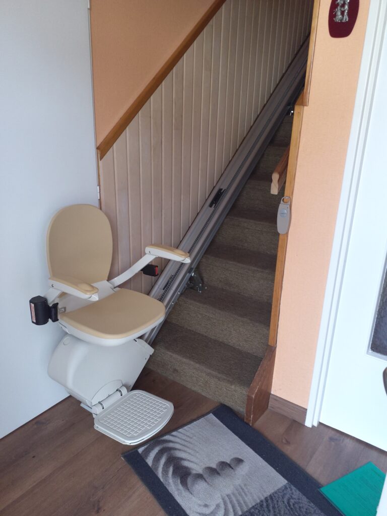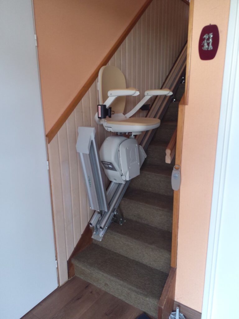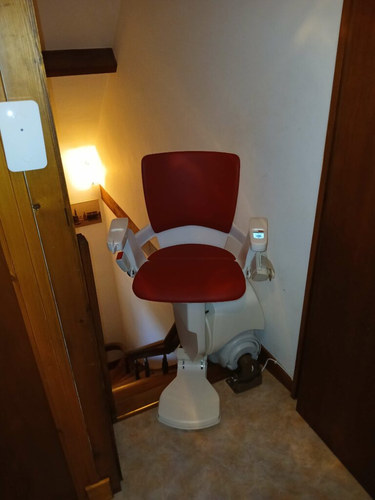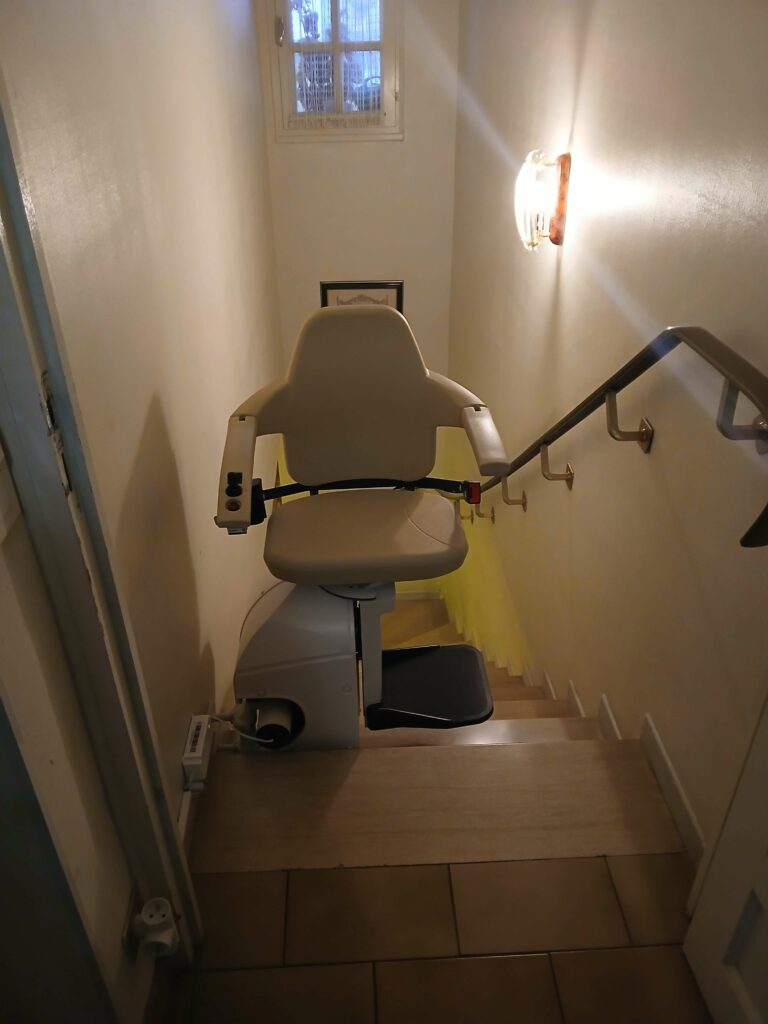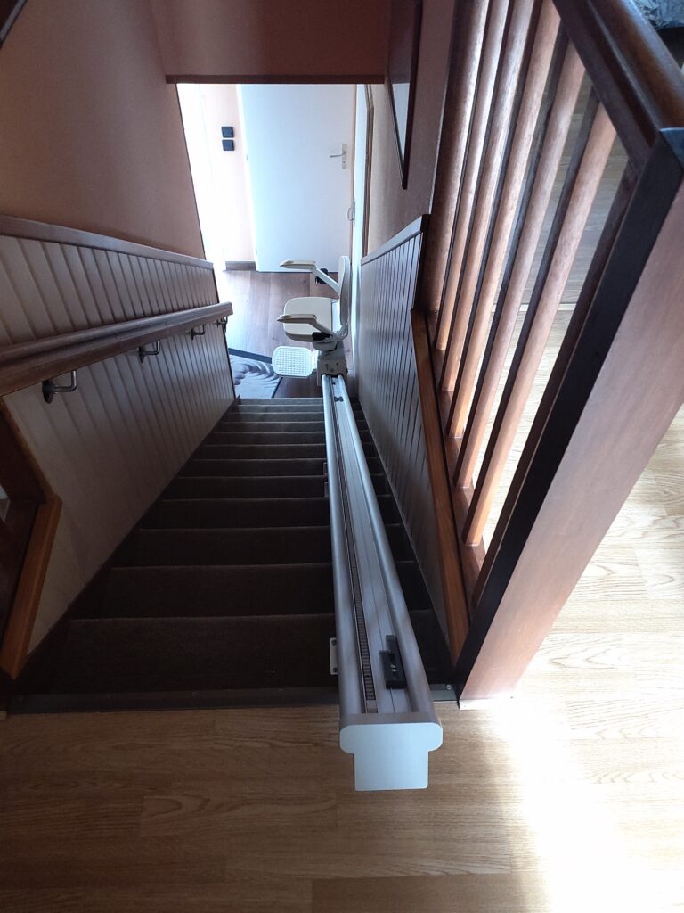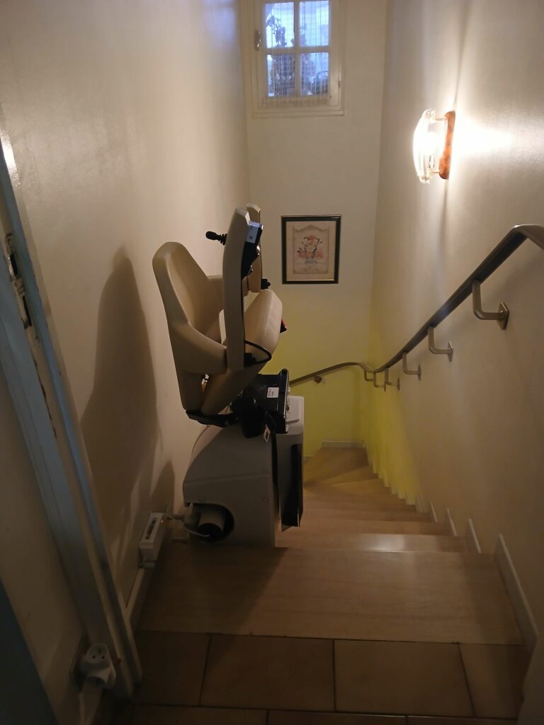 Après leur avoir installé l’année dernière un siège monte-escalier pour desservir le sous-sol, nous avons cette fois-ci équipé l’escalier permettant d’accéder au 1er étage.