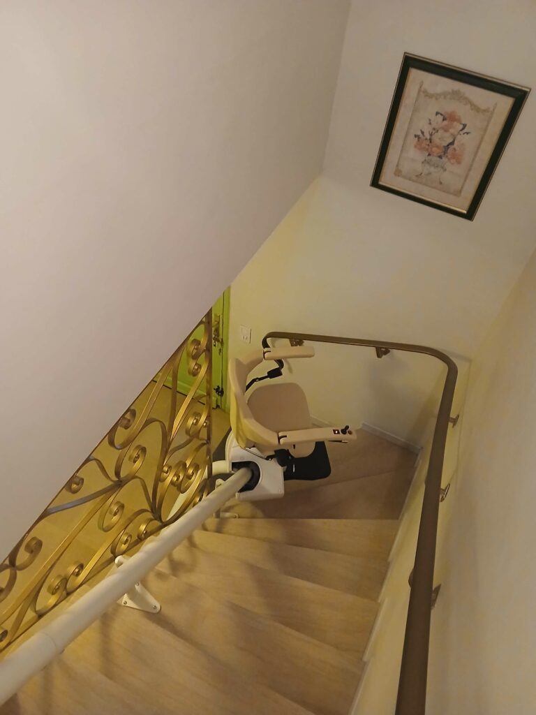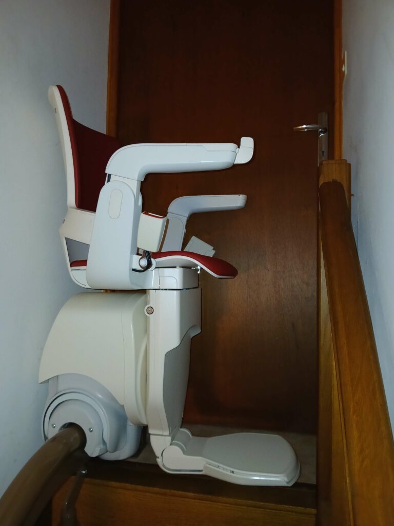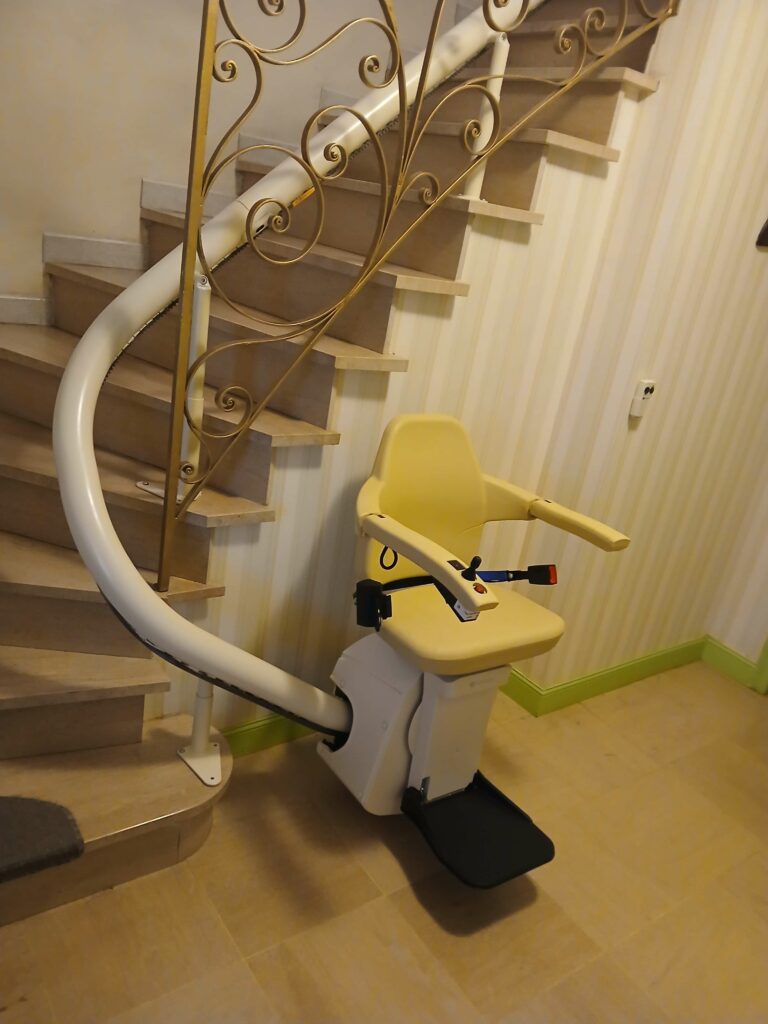 Nouvelle installation d’un monte escalier courbe Handicare siège Classic avec un pivotement électrique.