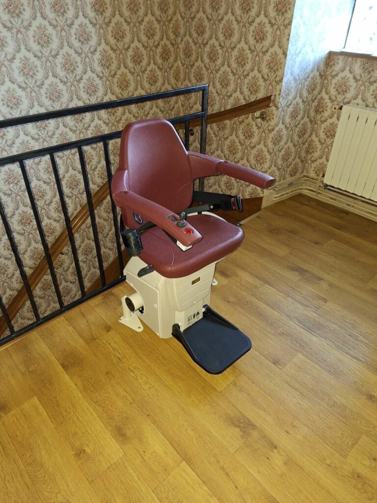 Nouvelle installation d’un monte-escalier Handicare à Lavergne (46) équipé d’un siège Classic sur un escalier ¼ tournant