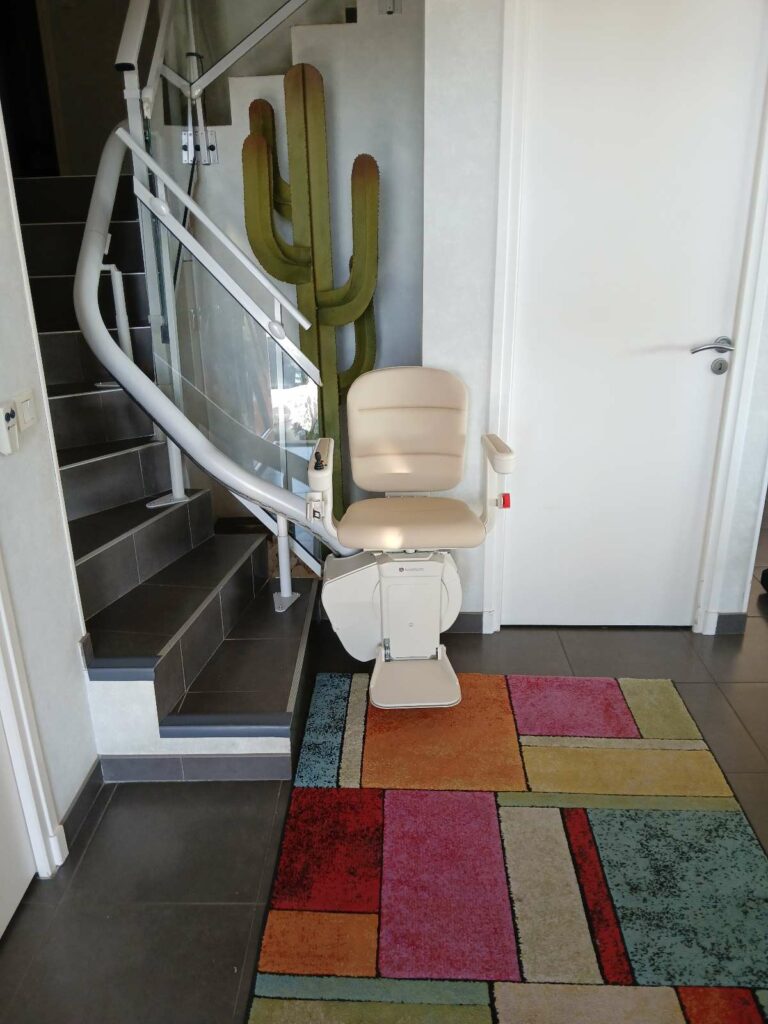 Nous avons donc installé un monte-escalier parfaitement adapté à la configuration des lieux :