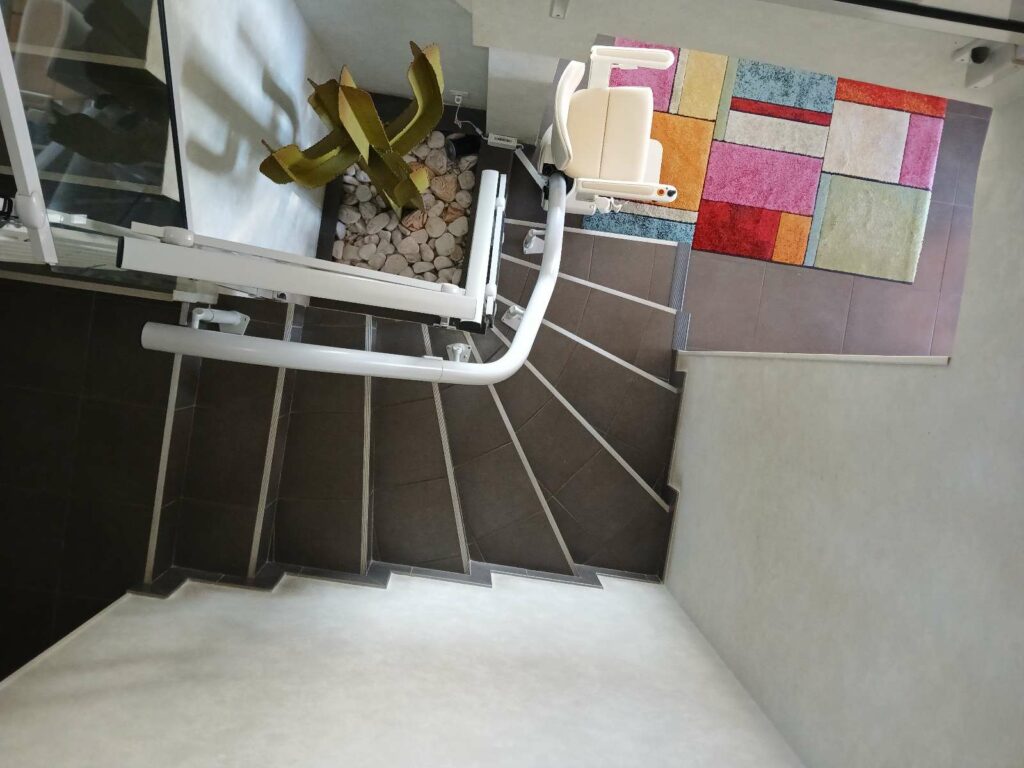Installation d’un monte escalier courbe rail relevable