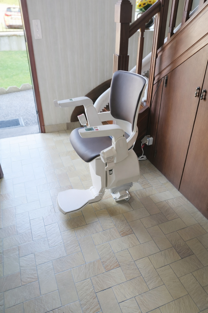 Nouvelle installation à Boisseuil (87) près de Limoges d’un monte-escalier Handicare équipé d’un siège Elégance dans un escalier en colimaçon